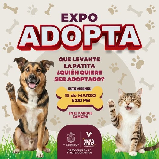 En el Ayuntamiento de Veracruz creemos en las segundas oportunidades. Por eso, te invitamos a la Expo Adopta, un evento lleno de amor donde podrás conocer a perritos que sueñan con encontrar un hogar para siempre. ❤️