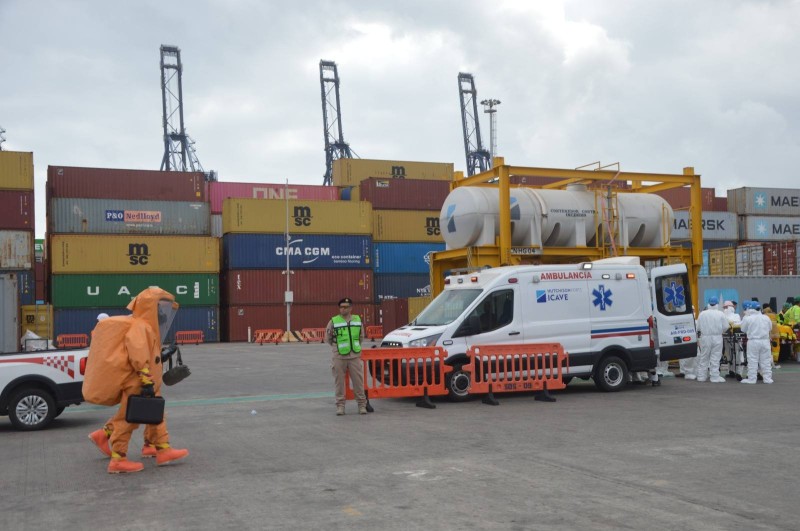 El ejercicio simuló el hallazgo de un contenedor declarado como vacío que, durante su movilización, presentó indicios de llevar una carga no reportada. Al realizar la inspección correspondiente por parte de la Unidad de Protección Portuaria (UNAPROP) número 32 y tras la apertura del mismo, se generó una nube de humo que afectó a personal cercano, activándose de inmediato los protocolos de emergencia.