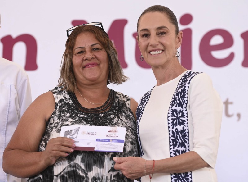 Destacó que la entrega del programa Pensión Mujeres Bienestar es un reconocimiento al trabajo de las mujeres y se suma a dos programas nuevos de su administración: la Beca Rita Cetina, que inició el año pasado con alumnas y alumnos de secundaria, pero que a partir de septiembre se extenderá a niñas y niños de primarias públicas para uniformes y útiles escolares; además de Salud Casa por Casa para personas adultas mayores y con discapacidad.