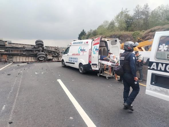 Tlacolulan, Veracruz. - Un fuerte accidente múltiple se registró la tarde de este viernes sobre la carretera federal Xalapa–Perote, a la altura de la localidad El Fresno, en los carriles con dirección a la capital del estado.