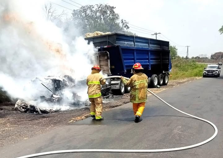 El siniestro ocurrió a la altura de la comunidad La Quebradora, donde automovilistas alertaron sobre una unidad envuelta en llamas. En cuestión de minutos, el fuego avanzó sin control, dejando prácticamente inservible la unidad motriz.