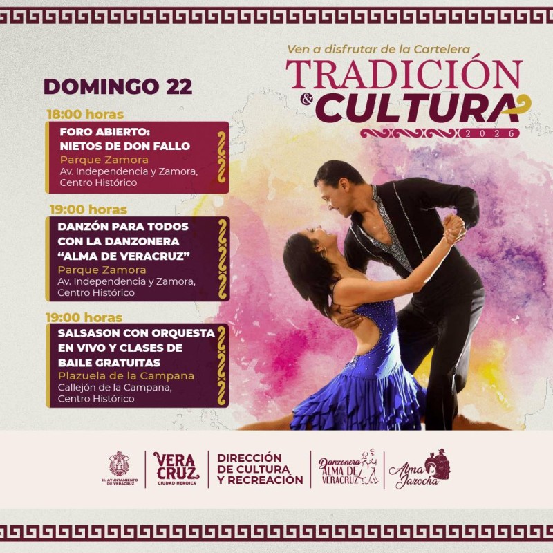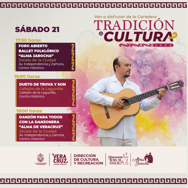 La alegría jarocha y el folkor te esperan esta semana en el Centro Histórico. ¡Conoce aquí la cartelera de Tradición y Cultura!