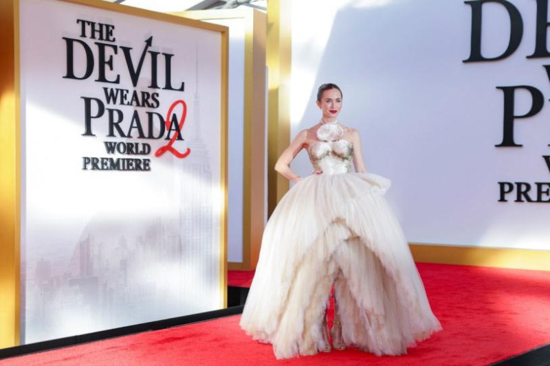 En una noche donde también brillaron Meryl Streep y Anne Hathaway —ambas apostando por impactantes looks en tonos rojos de Givenchy y Louis Vuitton, respectivamente—, Emily Blunt logró destacar con una propuesta completamente distinta. Su estilismo no solo fue arriesgado, sino también perfectamente alineado con la esencia de una película que celebra el poder de la moda.