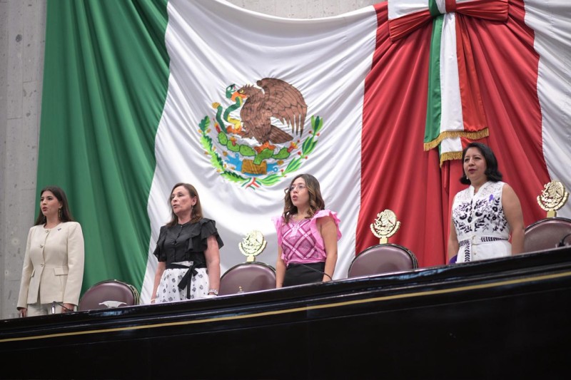 En el Recinto Oficial del Palacio Legislativo y con la asistencia de integrantes del gabinete estatal, presidentas y presidentes municipales, representantes de organismos autónomos y de organizaciones civiles y público en general, la presidenta de la Mesa Directiva, diputada Naomi Edith Gómez Santos, instruyó a las comisiones de cortesía recibir a las titulares de los poderes Ejecutivo y Judicial y a la condecorada.