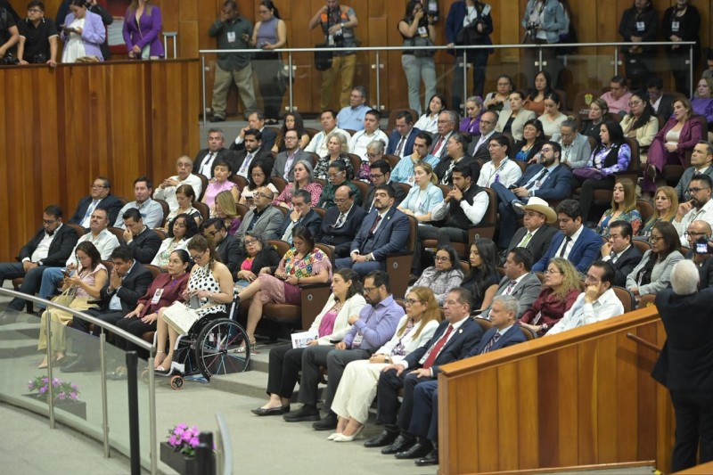 Posteriormente, el secretario de la Mesa Directiva, diputado Alejandro Porras Marín, dio lectura al Acuerdo emitido por la Comisión Especial y a las disposiciones que motivaron que el Premio Estatal a la Mujer sea entregado a la uróloga oncóloga Ana María Autrán Gómez.