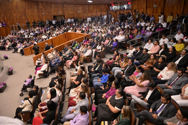 En sesión solemne del Congreso Local, acompañada por las titulares de los Poderes Legislativo y Judicial, Naomí Edith Gómez Santos y Rosalba Hernández Hernández, respectivamente, la Mandataria destacó su trayectoria en el ámbito de la medicina, por su formación y especialidades en distintas universidades del mundo.
