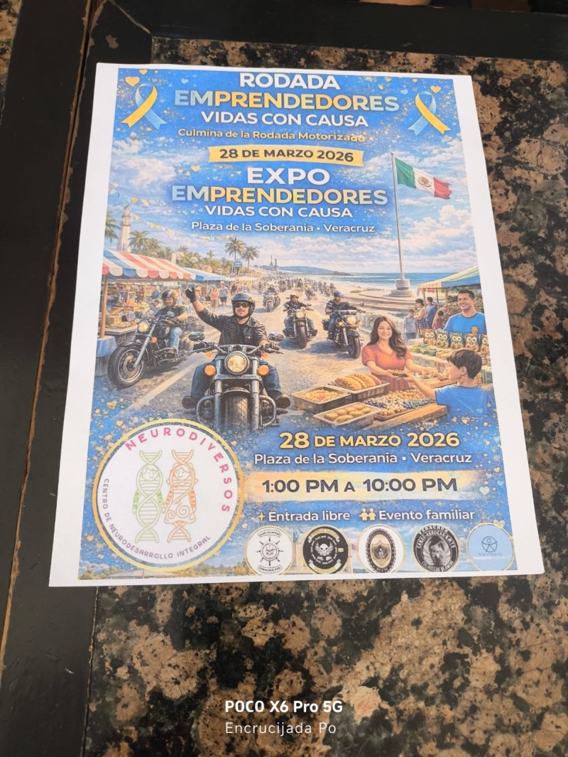 El próximo 28 de marzo se llevará a cabo en la zona conurbada Veracruz-Boca del Río una rodada con causa, en la que se espera la participación de motobikers de la zona, y cuyo objetivo es hacer conciencia entre la población acerca del Síndrome de Down y el Autismo, aunque también se estará llevando a cabo una expo emprendedores en la Plaza de la Soberanía con la finalidad de recaudar recursos económicos en beneficio de la asociación "Centro de Neurodiversos Veracruz", dedicado a la atención de personas con Síndrome de Down y del Espectro Autista.