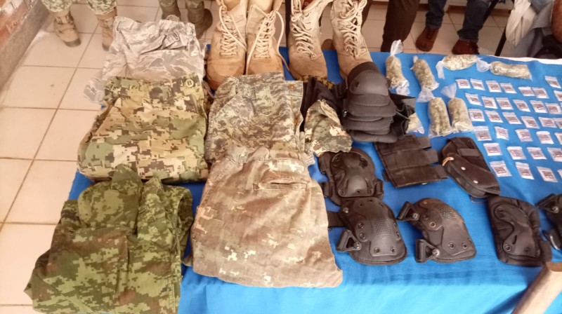 Asimismo, se aseguraron armas de fuego y réplicas, uniformes de las Fuerzas Armadas y equipo táctico utilizados para usurpar funciones oficiales en la comisión de actividades ilícitas; además de credenciales, decenas de dosis de droga y vehículos de distintos tipos.